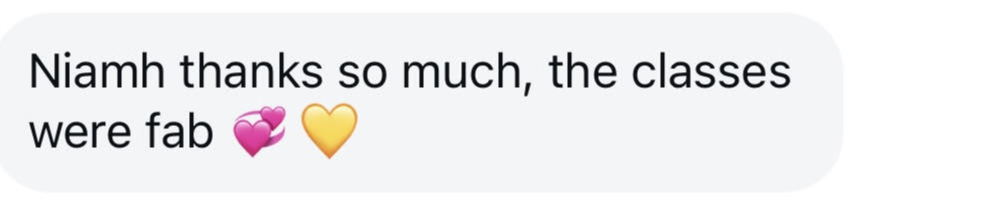 "I was unsure of breathwork at first, but after the first session I was so much calmer. These sessions were definitely needed as someone who works in a face paced environment to help me feel relaxed and regulated. Will be looking out for more of Niamh’s classes."